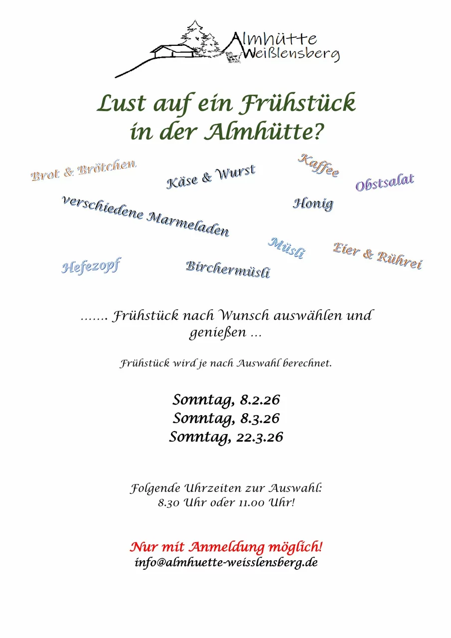 Außerhalb der Almhüttensaison (April-September) bieten wir die Ausrichtung geschlossener Gesellschaften an. Anfragen hierzu bitte per Email
